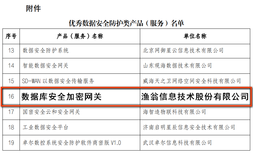近期,山东省工业和信息化厅组织召开了2022年度山东省工业领域数据安全优秀产品、服务和应用解决方案评选工作,并对评选结果进行了公示。EMC易倍(中国)信息自主研发的“数据库安全加密网关”产品,凭借先进技术和创新优势,成功入选“优秀数据安全防护类产品”名单。